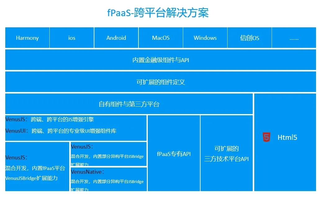 作为华为的战略合作伙伴,神州信息不仅是华为鸿蒙首批生态伙伴,更是率先完成面向金融机构的鸿蒙原生移动应用平台——“fPaaS全渠道技术开发平台”,帮助金融机构完成面向掌银、网银、移动信贷、移动展业等多场景的应用搭建,该平台具有如下特点: